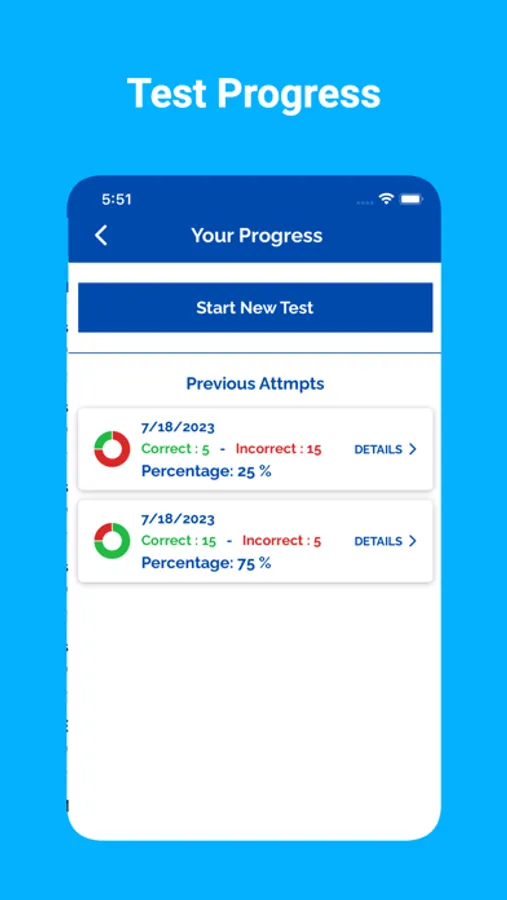 App tracks the users completed practice tests. The app tracks their progress, allowing them to identify areas for improvement and track their overall progress.