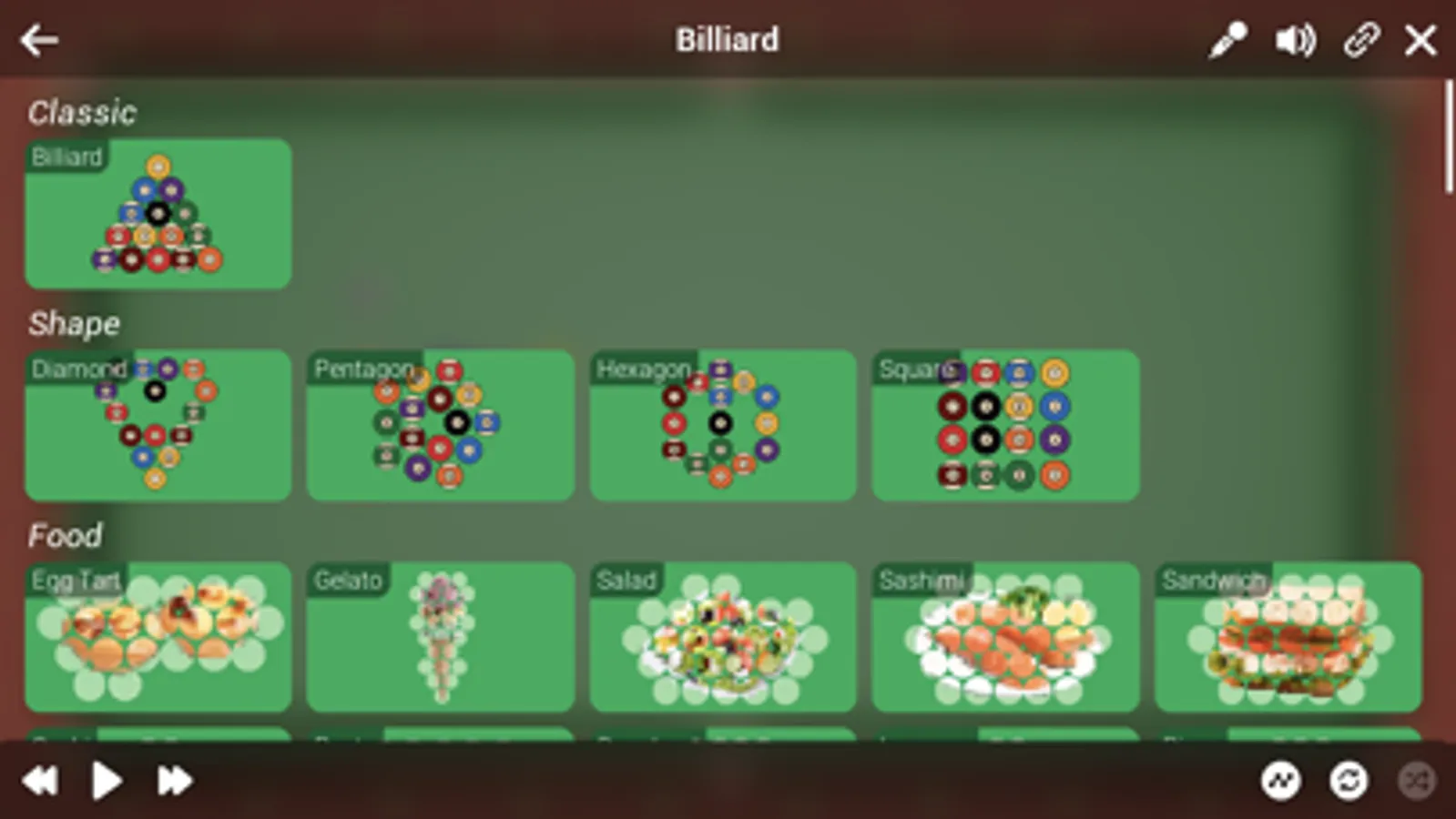The game are played by AI Players.They will clean the table with great skills.We just need to relax and watch them dance.For the players, there are more 100 configs of billiards, maybe those will satisfy them and you.