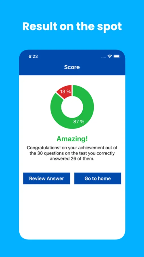 - Result on-the-spot with score