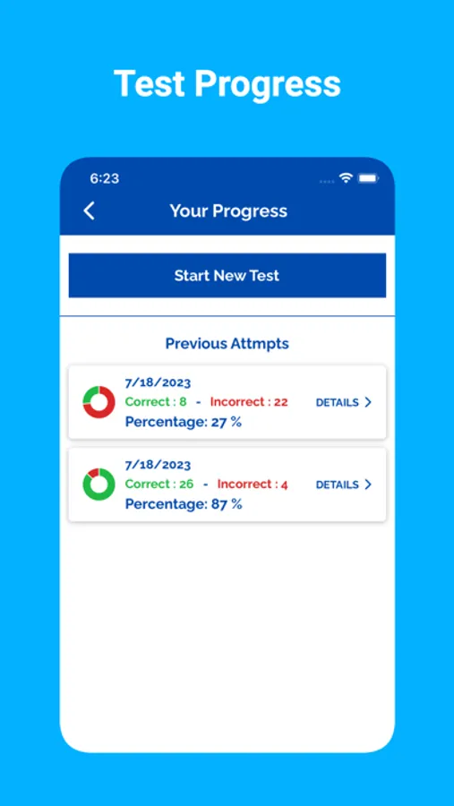 App tracks the users completed practice tests. The app tracks their progress, allowing them to identify areas for improvement and track their overall progress.