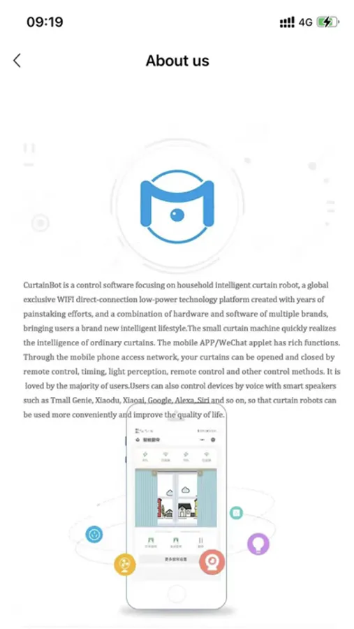 CurtainBotis a control software focusing on household intelligent curtain robot, a global exclusive WIFI direct-connection low-power technology platform created with years of painstaking efforts,and acombination of hardware and software of multiple brands, bringingusersabrand newintelligentlifestyle.The small curtain machine quickly realizes theintelligence ofordinarycurtains.The mobile APP/WeChat applet has rich functions Through themobilephone access network your curtains can be opened and closed by remotecontrol,timing,lightperception, remote control and other control methods. Itis lovedbythemajorityofusers.Users can also control devices by voice with smart speakers suchasTmallGenieXiaodu,Xiaoai,Google,Alexa, Siri and so on, so that curtain robots can be used more conveniently and improve the quality of life.