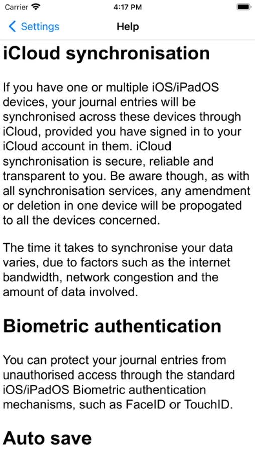 to read your journal. If you have more than one iOS device, the contents will be synchronised across those devices as well.