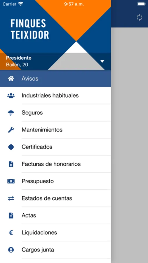 Permet a propietaris de comunitats i arrendadors accedir a la informació següent en temps real: - Industrials habituals, certificats, pòlisses d'assegurança i contractes de manteniment. - Estats de comptes - Liquidacions - Incidències en curs i completades - Documents diversos Per al cas de propietaris de comunitats també permet accedir a: - Pressupost vigent - Actes de reunions realitzades - Càrrecs de la junta de la comunitat (president, vicepresident, etc..) - Llista de rebuts pendents - Formes de pagament de rebuts