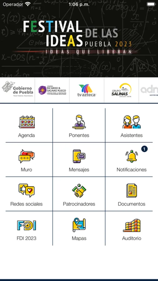 This is the Festival de las Ideas app, the tool that help you enjoy even more the experience of this space for reflection and inspiration. Here you will find all the information related to the festival, such as the program, you will meet the speakers who will participate and we will show you places of interest in Puebla. Also, you can add the presentations to your personalized calendar. Do not forget to follow us on our social networks and tag your photos with the hashtags #FDIPuebla2023 #IdeasQueLiberan!