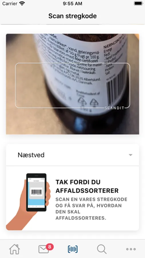 • En scanningsfunktion, der nemt og hurtigt giver dig svar om affaldssortering med tekst, billede og piktogrammer.