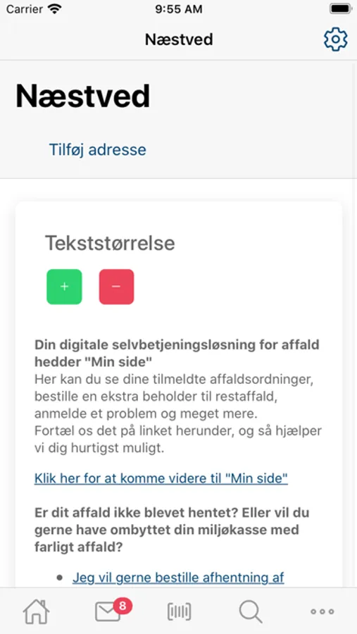 • Direkte adgang til information og nyttige links, som vedrører dit affald.