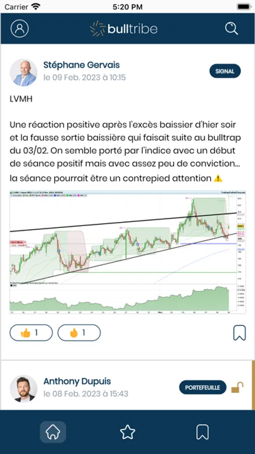 Vous pouvez adhérer à bulltribe en quelques clics et découvrir du contenu gratuit provenant des meilleurs professionnels des marchés financiers à travers un fil d'actualité !