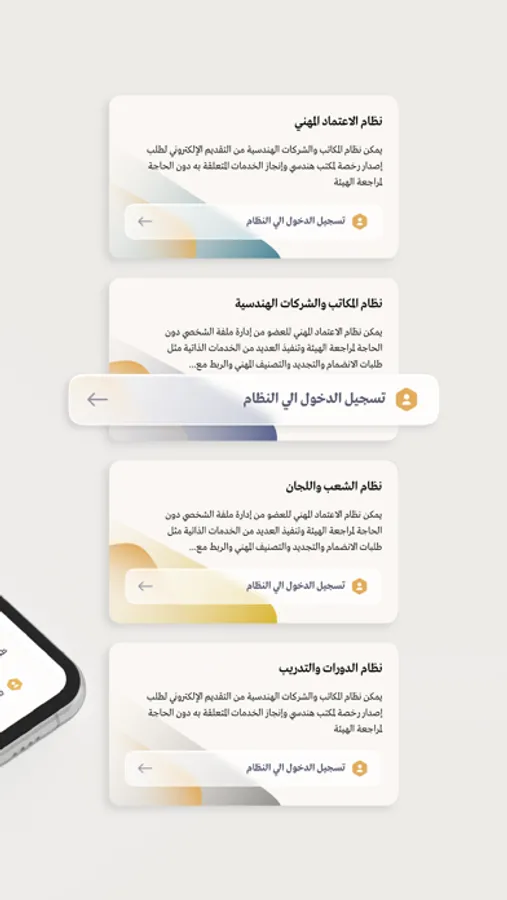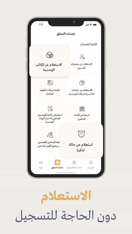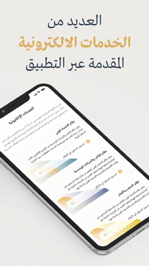 The application enables members and visitors to inquire about the membership of an engineer or technician, or about an engineering office or company, as well as review the list of technical experts and others, and display information about the General Authority such as news, addresses, and branches of the Authority. It also includes the authority's social networking sites.