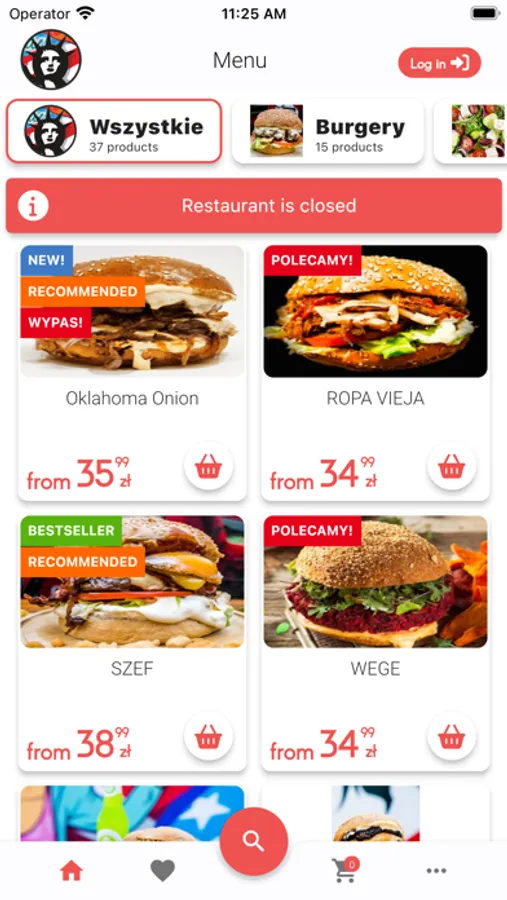 System online do zamawiania jedzenia w restauracji Szaman Burger.