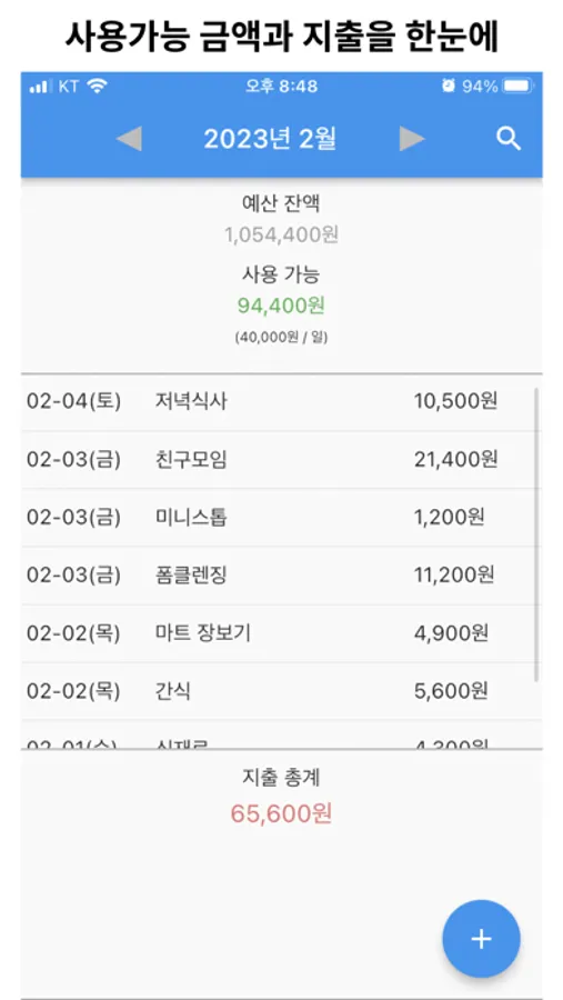 # 목표 예산을 해당 월의 일수로 나눈 금액을 매일매일 '사용 가능 금액' 영역에 적립하여 표시.