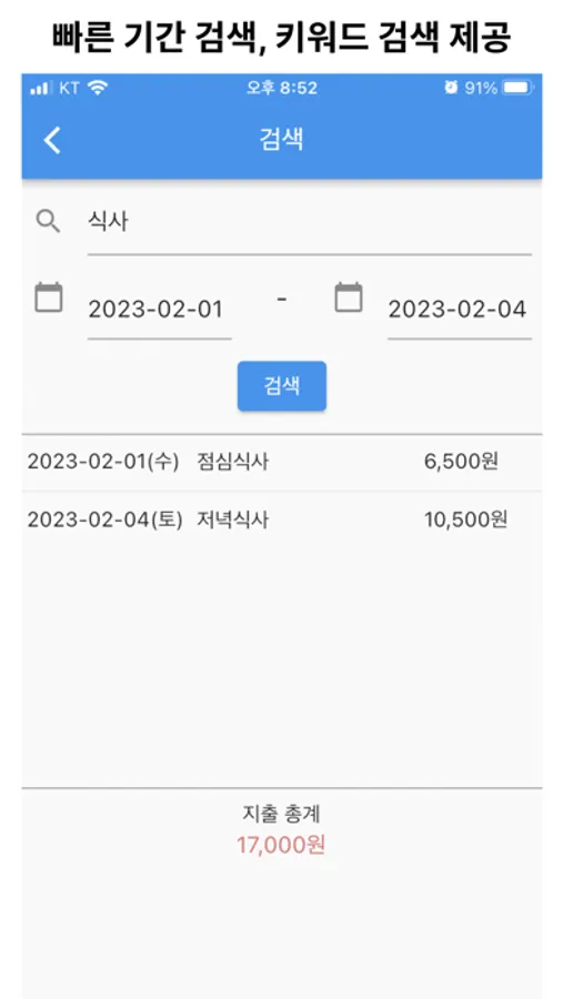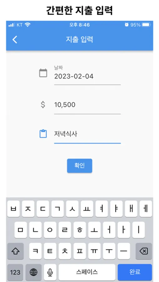 # 지출 입력 시 복잡한 것 없이 날짜, 금액, 내용만 입력하면 됩니다.