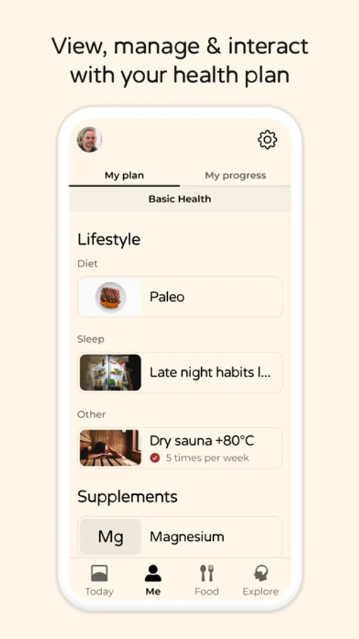 In the app, you will find detailed instructions and scientific information about different diets and associated food lists and recipes, as well as supplements, and other lifestyle changes. There are also broader educational materials that give you a better understanding of how you can effectively use diet, sleep, and stress management to improve your health.