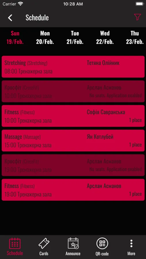Registration in the club, viewing the schedule and season tickets, signing up for training.