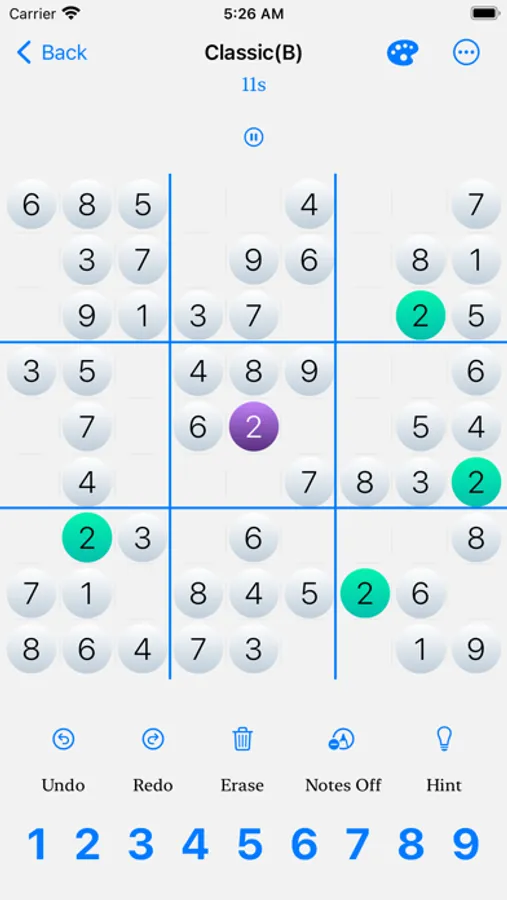- Increase or decrease complexity of game with settings for showing mistakes, hiding used numbers and highlighting identical numbers.