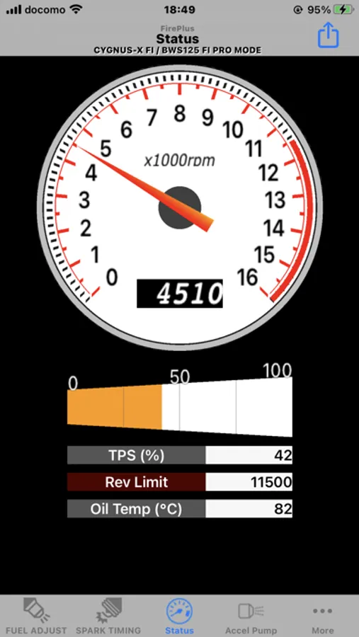 - The fuel map, showing real-time engine speed, throttle position of the current.