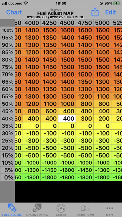 - The maximum 2500micro/-7500(ex.GROM JC61)micro seconds the engine rotation and throttle position for each fuel injection increase / decrease can edit and write-read.