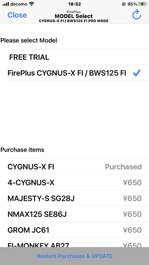 Although this App can be downloaded for free, only the screen of the tachometer is displayed free of charge. It is necessary to purchase download bike model that conforms to the model of the motorcycles.