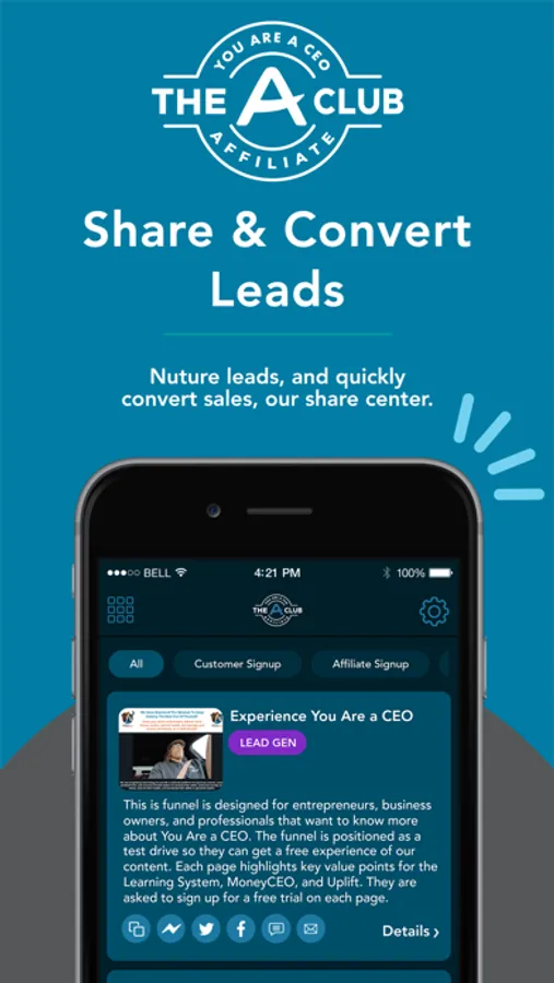 Our Share Center helps you maximize your income potential. With trackable links for easy sharing, these effective promotional funnels will help nurture leads and quickly convert conversions - so when a prospect purchases from clicking on your link, you get paid! Develop or optimize campaigns with the sharing center to supercharge those earnings.