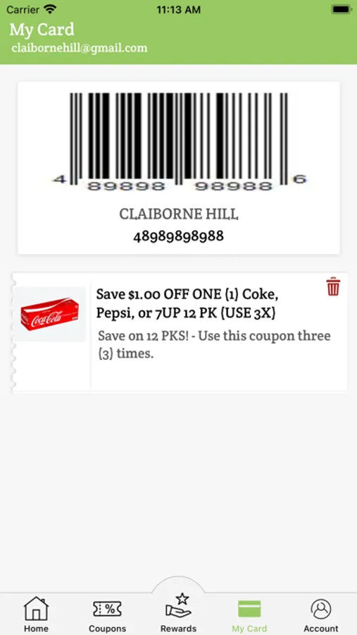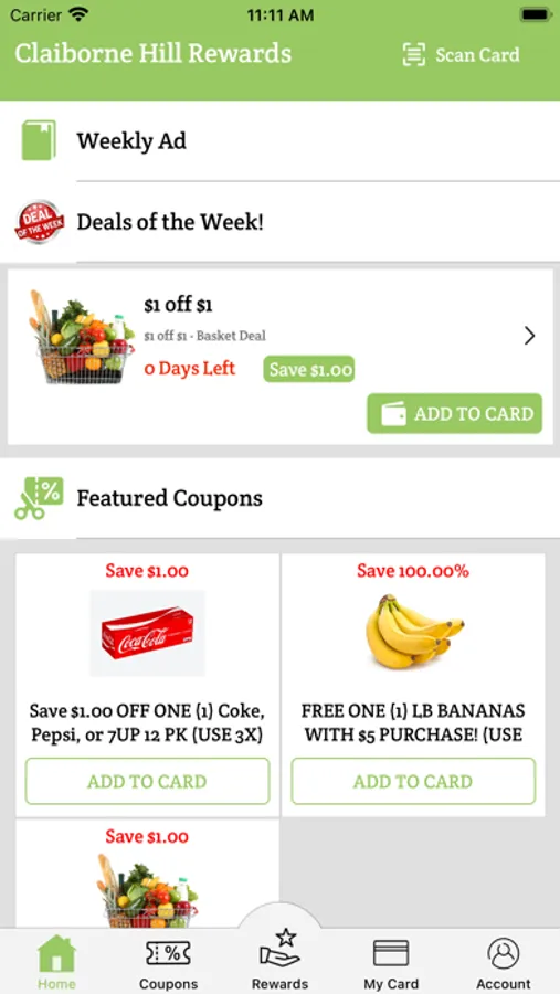 The Claiborne Hill Rewards App is the easiest way for our loyal customers to receive savings and digital coupons every time they shop! The Claiborne Hill rewards App brings savings to your smartphone device in a simple and and easy to use App. Enhance your shopping experience with Claiborne Hill Rewards App by registering for a new account, adding coupons to your accounts, and present your digital loyalty card to the cashier to scan at the register!
