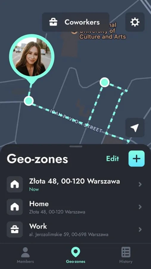 The app also includes geofence zones, which allow you to know when any of your circle members enter or leave a certain area by creating a location-based boundary. You can drop a pin on the map to set the center of the geofence at a specific location, name your geolocation, set the radius for it, and get push notifications when someone enters or exits it. This feature can help you ensure that your loved ones are safe by automatically letting you know their whereabouts, without any effort from them.