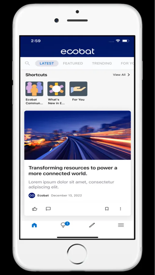 The Ecobat app is a better way to stay informed and connected with your Ecobat peers and community -- in just 2 minutes a day.