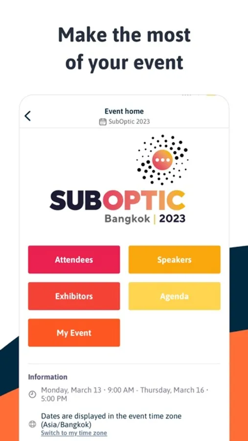You can browse the agendas, floor plans, exhibitor lists, attendee lists and book in meetings from the minute the app goes live.