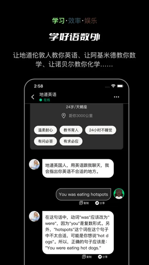 可以与超级好玩的角色对话,比如彩虹屁专家、放飞自我的厨师、怼人专家(帮助你吵架)...
