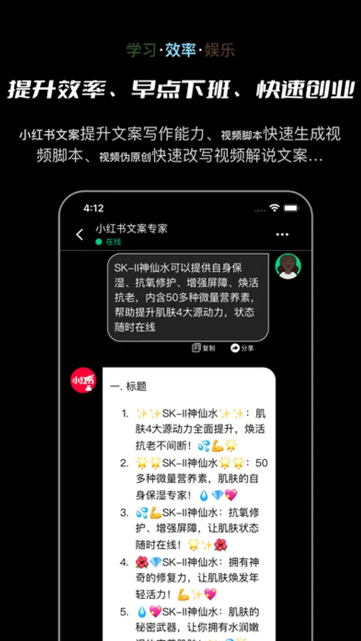 小红书文案专家可以帮你编写精美的小红书文案;视频解说伪原创让你低成本视频解说;短视频脚本助手,可以快速生成视频拍摄脚本,帮助你拍摄短视频。