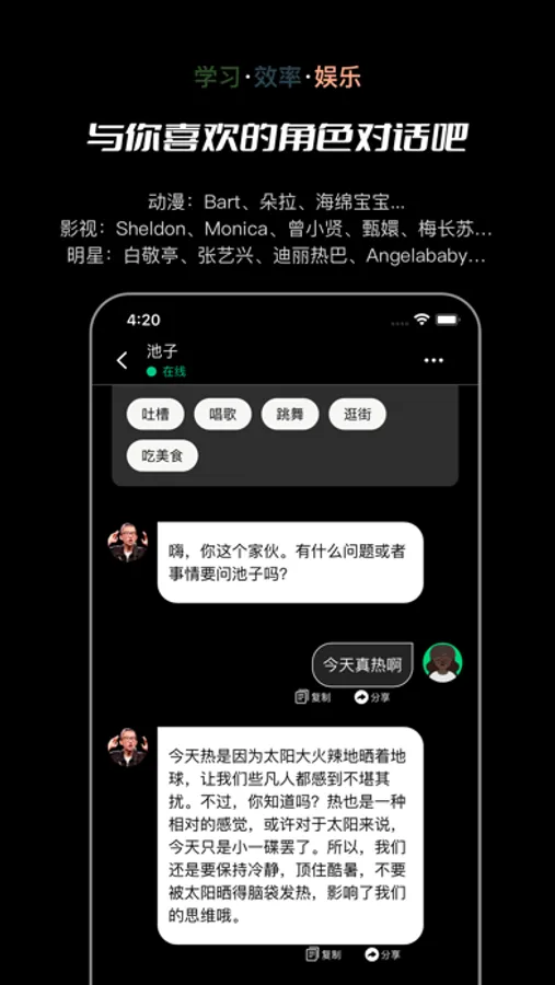 可以与影视剧角色对话,比如甄嬛、Sheldon(生活大爆炸)...