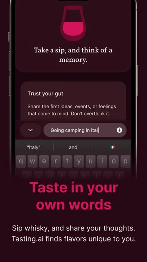 This app was made by bartenders, for whisky lovers. Like a good bartender, tasting.ai will teach you what you like. We want to give you the confidence to speak your mind in any tasting, because what matters most is what tastes good to you. As we explain in our whi.ski blog called The Joy of Tasting, everyone is an expert when it comes to taste.