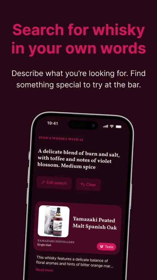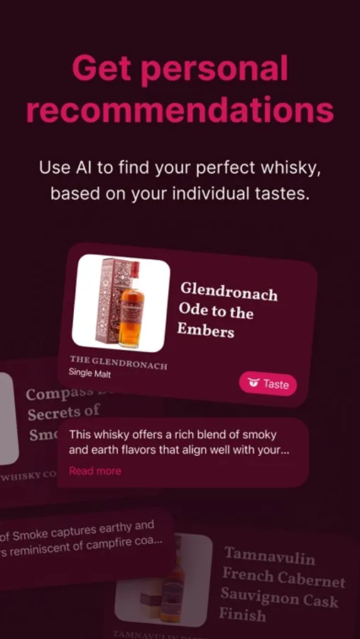 Tasting.ai helps you discover great whiskies you’ve never heard of—but it also explains why you’ll like them. Each recommendation you get in the app comes with a clear rationale that explains how the bottle fits into your flavor preferences, or your search terms.