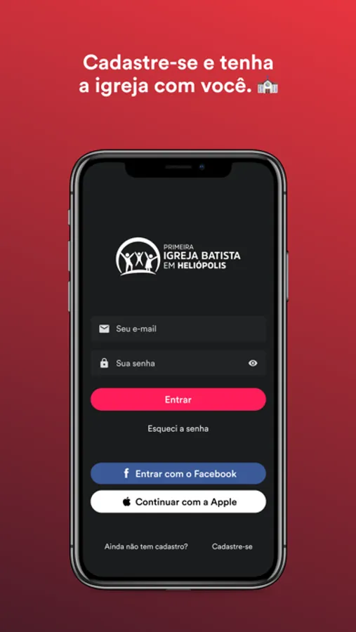 - Conecte-se com a igreja através dos grupos de interesse, receba conteúdo direcionado e obtenha sua carteirinha exclusiva.