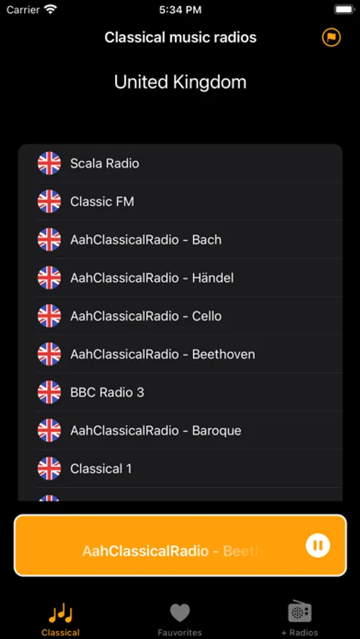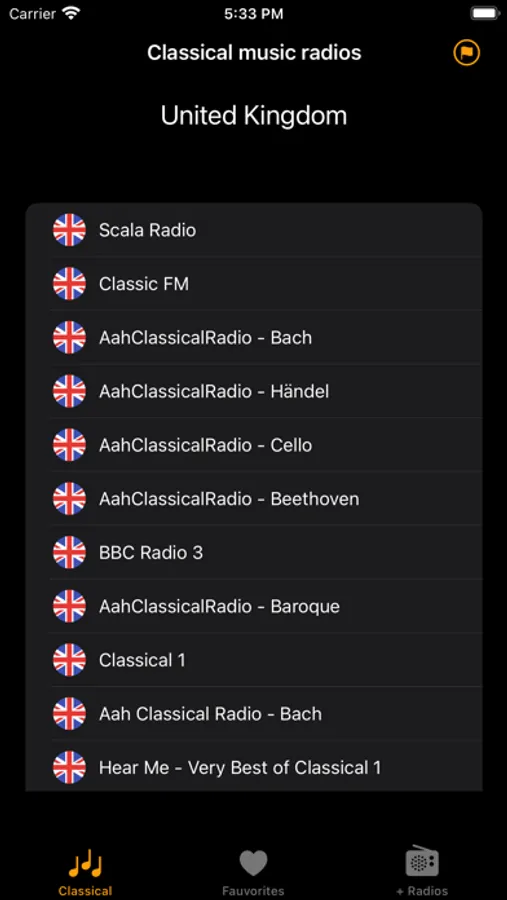 In future versions we will introduce classical music stations from other countries. Keep notifications on to stay up to date with new updates including new countries.