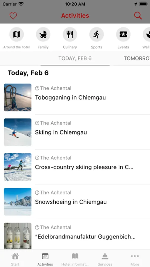 Filter according to different interests such as golf, wellness, culinary delights. Put together your own programme from our activities. In this way, the Achental App offers content tailored to your personal needs.