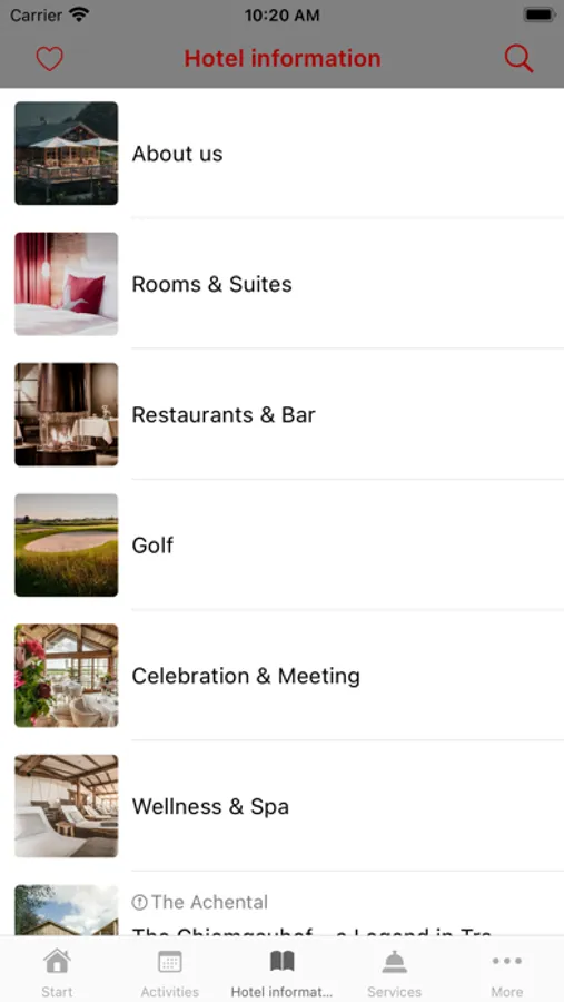 Important standard information about Das Achental, such as location and directions, as well as restaurant and reception opening hours, are prepared for you in the app.