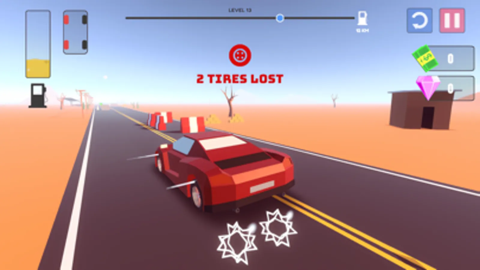 Out of fuel is a challenging game .The main challenge is to drive a car with low fuel to reach the gas station before it runs out of fuel ,including additional challenges while playing, such as obstacles , thorns , barrels and tornados.