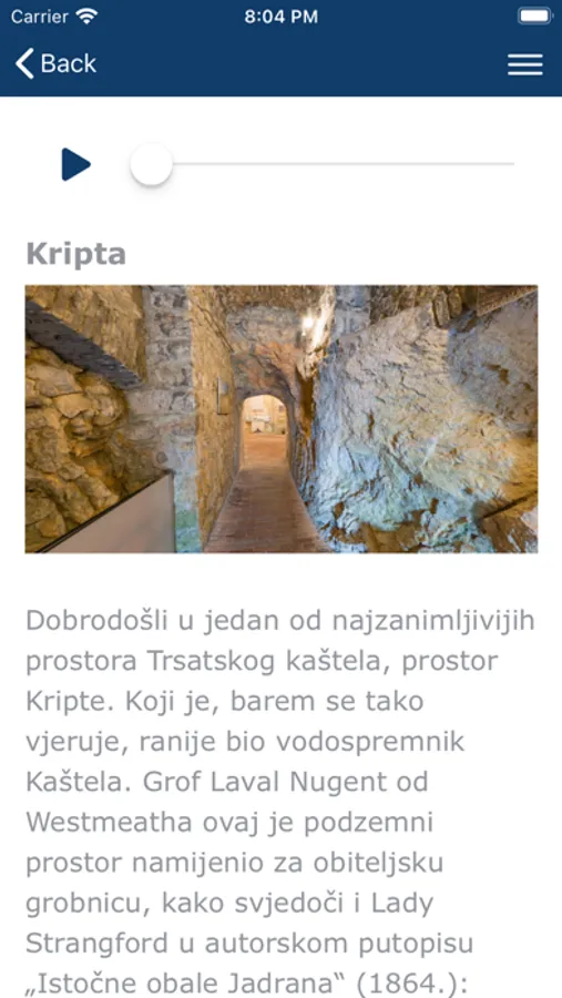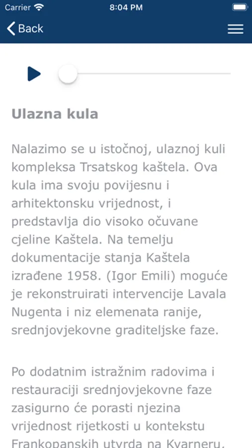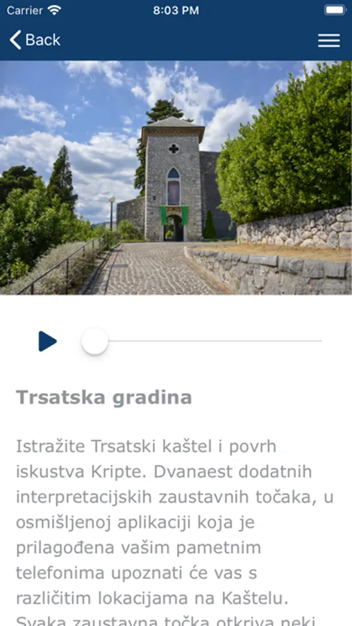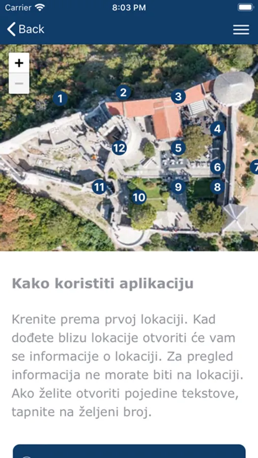 Your mobile device automatically detects interpretation points when you get close enough (the Bluetooth on your smartphone must me switched on), where interpretation can be followed in Croatian or English.
