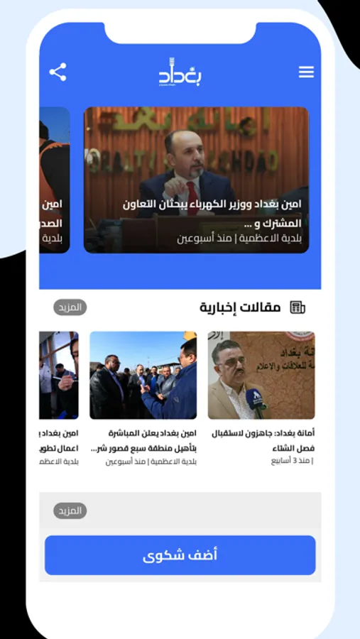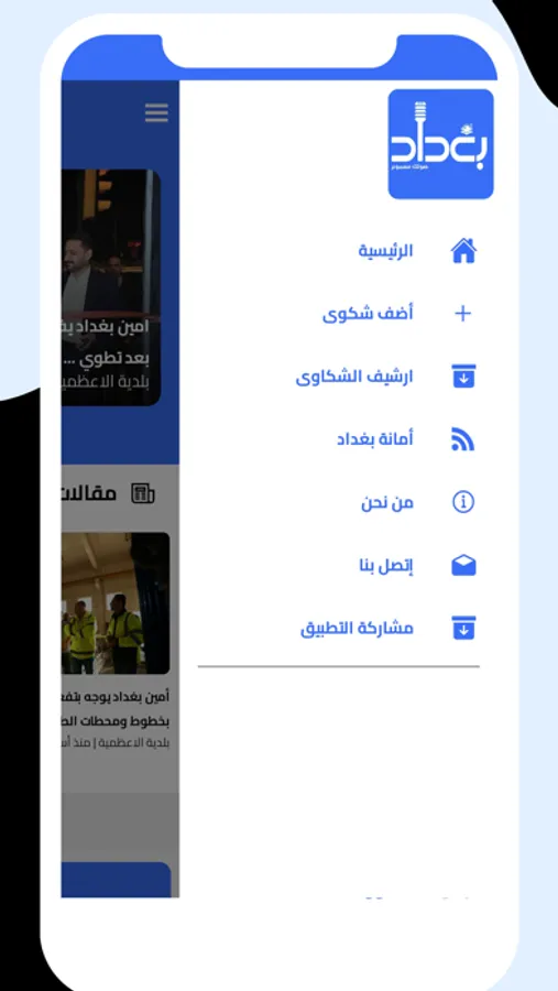 Baghdad application - the voice of the citizen, is the audible voice that will connect the Iraqis with the specialized municipalities in order to hear their problems and complaints, as well as identify the problems accurately through the latest technology.