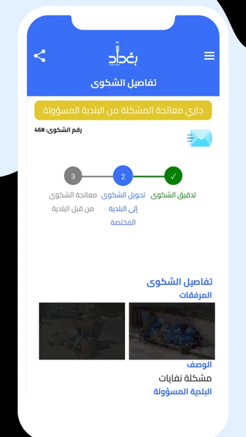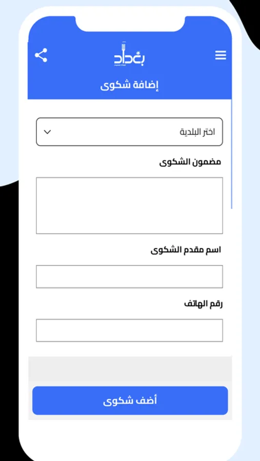 Through the Baghdad - Citizen Voice application, you can send pictures and attachments related to any complaint, in order to clarify the problem accurately, and solve it by the Baghdad Municipality and its affiliated municipalities.