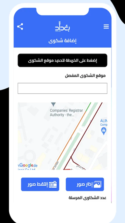 Through the Baghdad Citizen Voice application, you can send the geographical location of the complaint, so that the Baghdad Municipality can locate the complaint and resolve it as soon as possible.