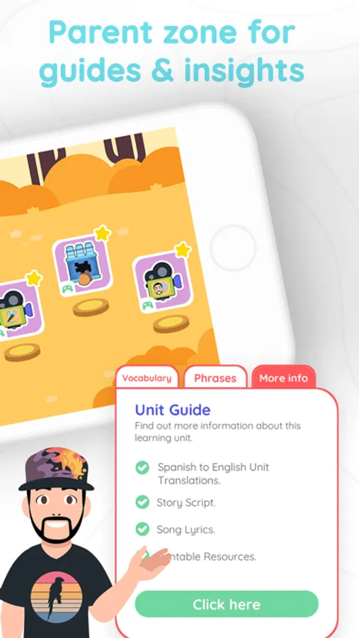 Featuring 300+ Spanish games, stories, and catchy songs to develop grammar and Spanish vocabulary, Loritos World provides an interactive and immersive learning experience for kids.