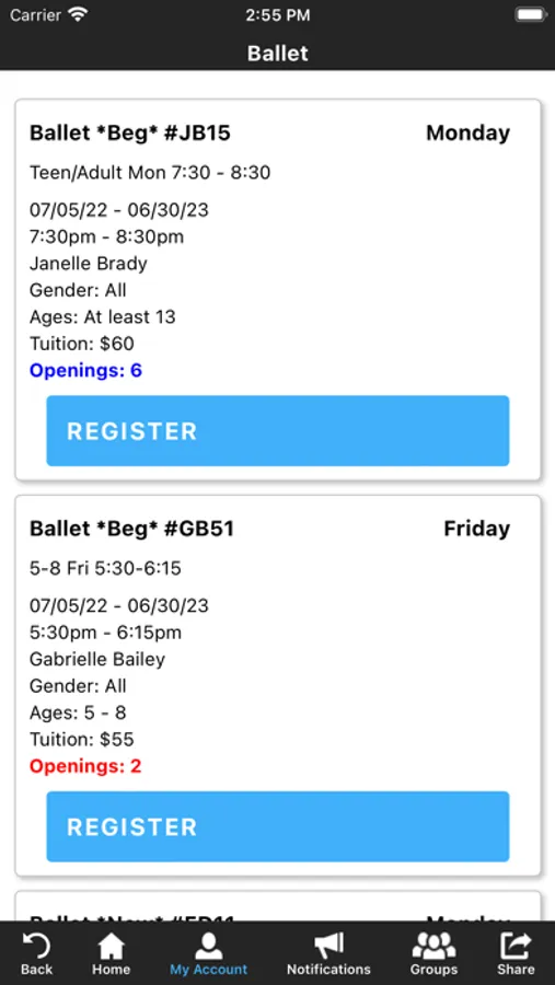 The Jacque’s Dance Expressions app allows you to manage your account with ease, register for classes, parties, and special events. You'll also receive important notifications about class changes, closings, registration openings, special announcements, and upcoming events.