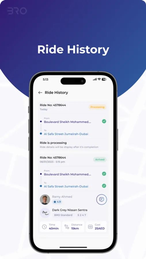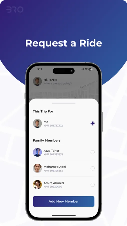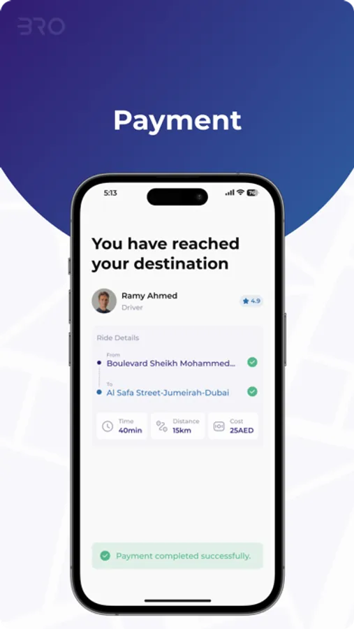 Ride with Bro and rest assured that all our partner service providers have been verified in advance, approved and approved after verifying all their data, for more peace of mind Bro offers you in-app security features, secure payment methods and round-the-clock Captain Support all days of the week.