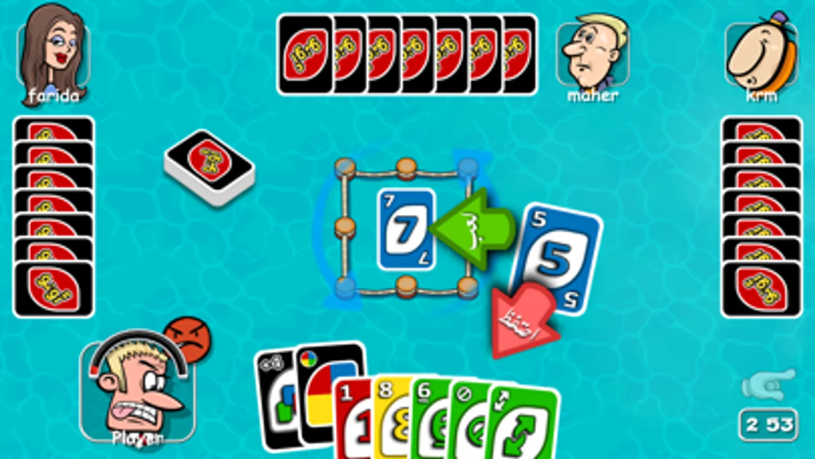 ابحث عن جواكر اوراق اللعب اثناء مباراة الاونو وامساكك شدة اونو