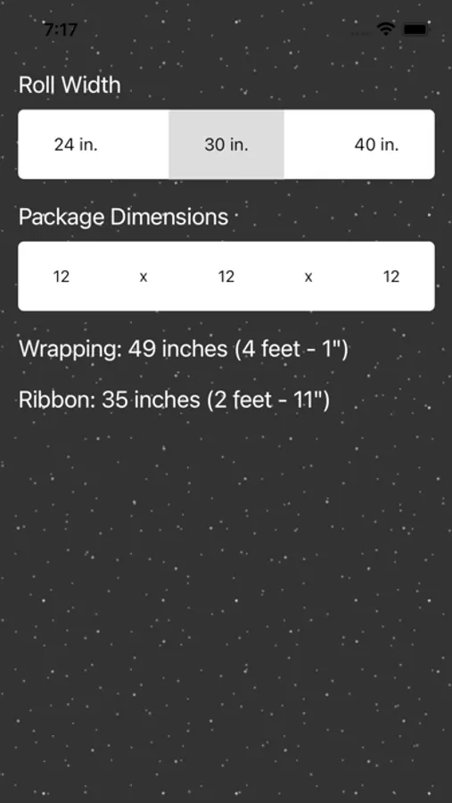 Simply select the length of your wrapping paper roll and enter the dimensions, in inches, of the box you wish to wrap.