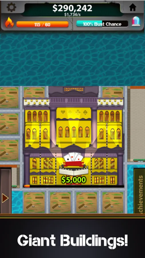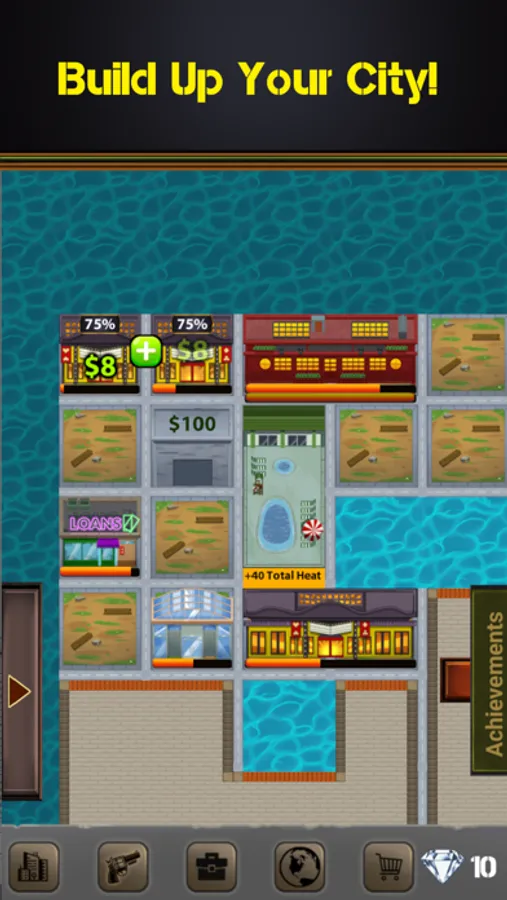 Create your City by building black market buildings. But choose wisely! Some Buildings are better than others and they must be placed with strategy for maximum effect!