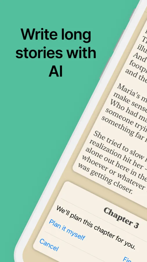 The Novelizer app lets you write long, multi-chapter stories with AI. Each chapter continues the storyline, taking into account what happened before. It's super easy to get started, so download & try it out!