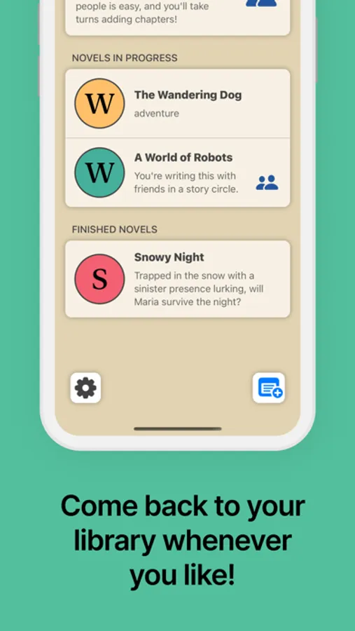 With our new Multiverse feature, you can go back to earlier parts of your novel, and branch off in a totally different direction. Change your mind? Switch back to your original storyline instantly. You can also write a novel together with your friends, taking turns adding chapters. You can even share links to your stories on the web.