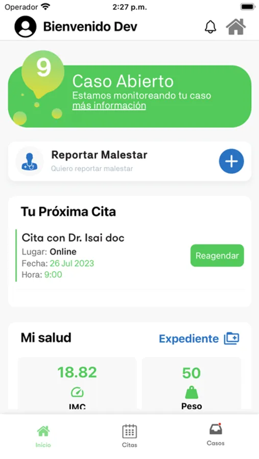 Además la plataforma cuenta con tu expediente clínico electrónico - que incluye tus enfermedades previas, factores de riesgo, alergias, estudios y análisis de laboratorio - lo que nos permite brindar una atención médica de alta calidad.