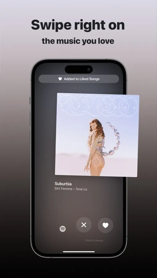 The algorithm is designed to learn your musical taste and provide you with tailored recommendations that match your interests. To get started, effortlessly integrate your Spotify account. From there, swipe right on any track that catches your attention, and it will automatically be added to your library. Conversely, swipe left to effortlessly skip any song that doesn't pique your interest.